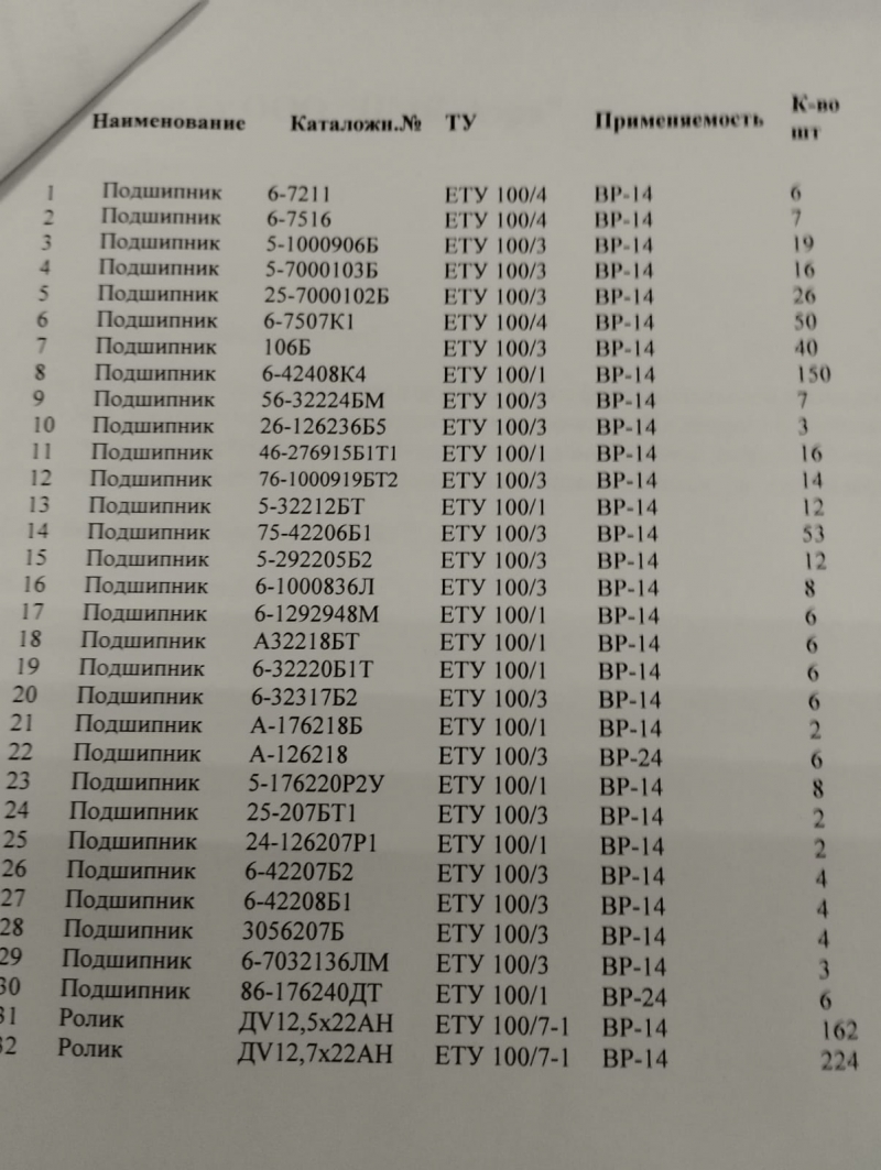 Подшипник 5-7000103Б ЕТУ 100/3.Подшипник 25-70001026 ЕТУ 100/3.Подшипник 6-7507K1 ЕТУ 100/4.Подшипник 106Б ETY 100/3.Подшипник 6-42408K4 ЕТУ 100/1.Подшипник 56-32224БМ ЕТУ 100/3.Подшипник 26-12623655 ETY 100/3.Подшипник 46-276915БІТІ ЕТУ 100/1.Подшипник 76-10009195т2 ЕТУ 100/3.Подшипник 5-32212БТ ЕТУ 100/1.Подшипник 75-4220651 ЕТУ 100/3.Подшипник 5-29220552 ЕТУ 100/3.Подшипник 6-1000836J ЕТУ 100/3.Подшипник 6-1292948М ETY 100/1.Подшипник А32218БТ ЕТУ 100/1.смотрите фото